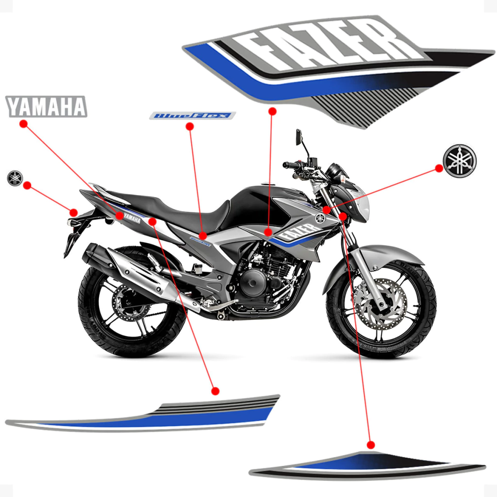 Kit Adesivos Compatível Moto Yamaha Fazer 250 Flex 2015 + Emblemas