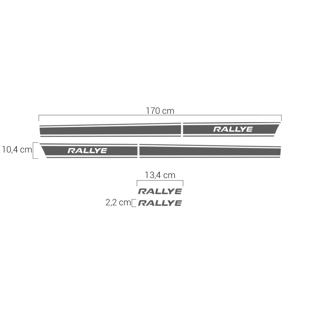 1 Jogo de Faixas Laterais Rallye Cor Grafite / Fabricado em Vinil Transparente/ Dimensões: 170 x 9,7 cm