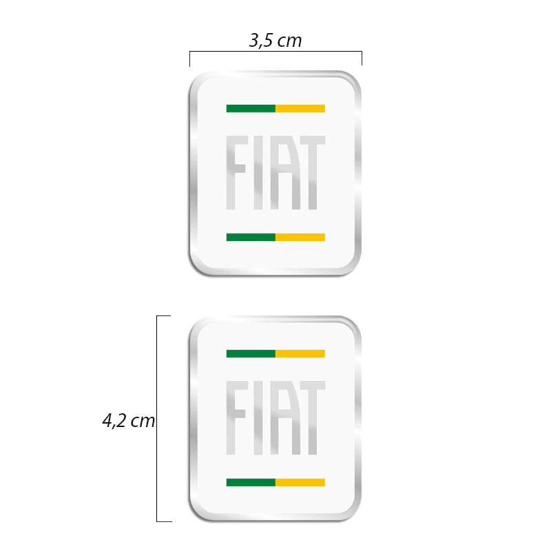2 Emblemas Fiat Resinado / Fabricado em Poliéster Cromado / Dimensões: 4,2 x 3,5 cm