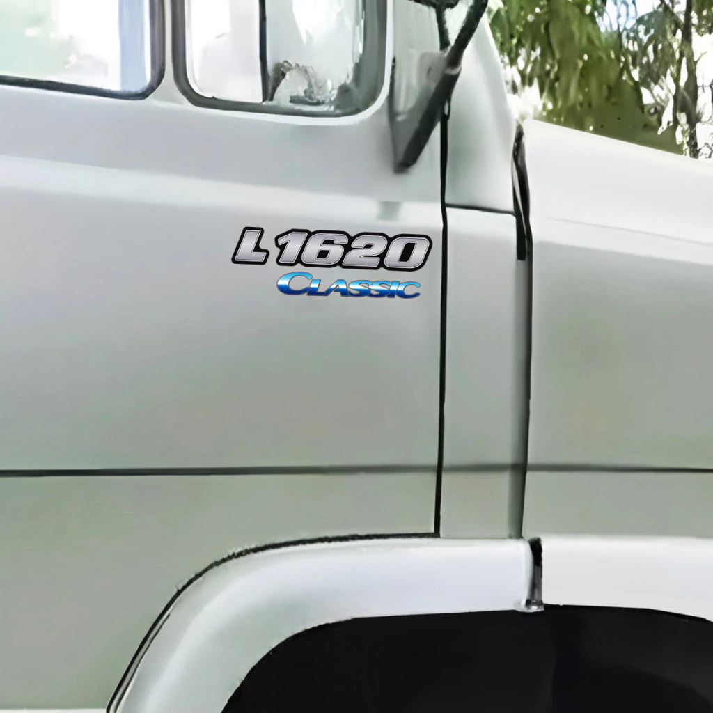 Kit Adesivos L1620 Classic Lateral + Logo MB Frontal + Emblemas Etiquetas Aprovado Compatível Caminhão Mercedes Benz L1620 Emblema Cromado - Genérico