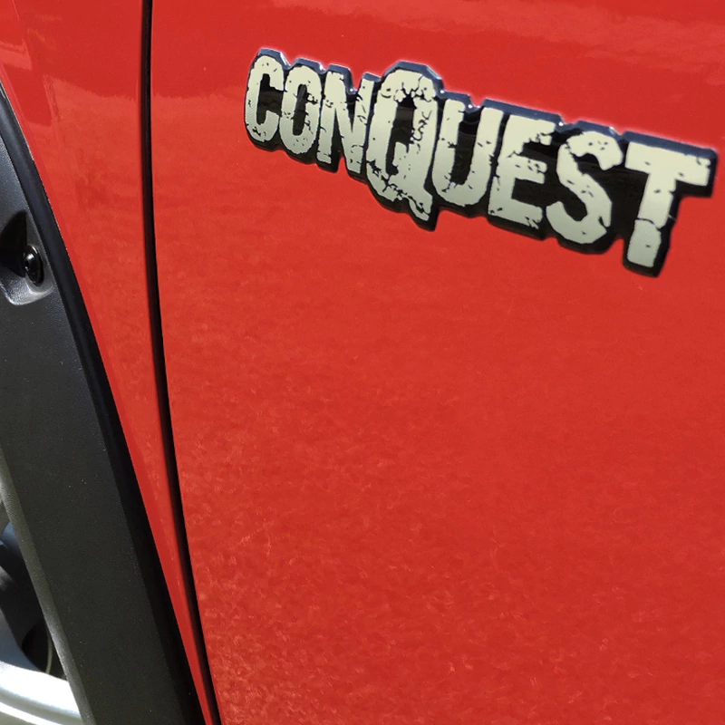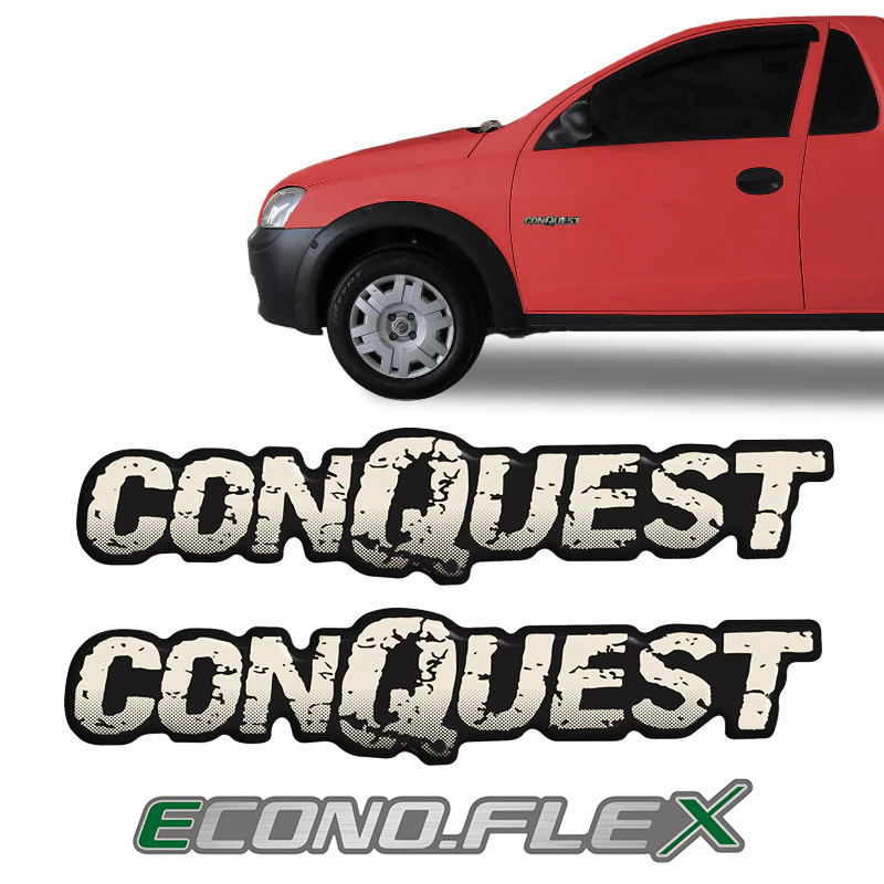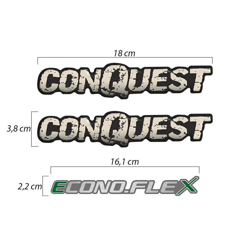 2 Adesivos Conquest Resinado / Fabricado em Vinil Branco / Dimensões: 18 x 3,8 cm