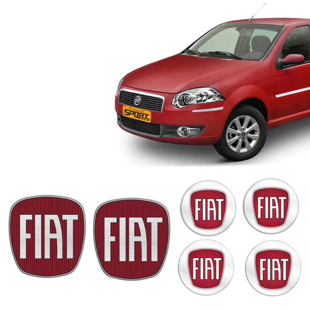 Kit Emblemas Para Fiat Siena 2008 2009 2010 2011 Vermelho Resinado - Genérico