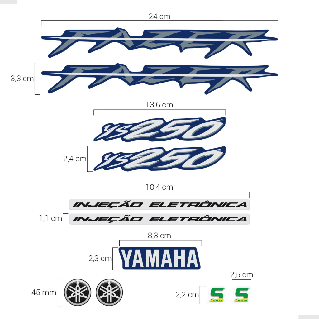 Kit Adesivos Para Moto Yamaha Fazer 250 YS 2008 + Emblemas Resinados - Genérico