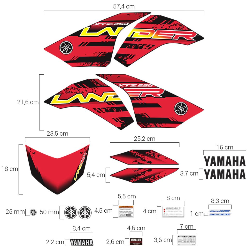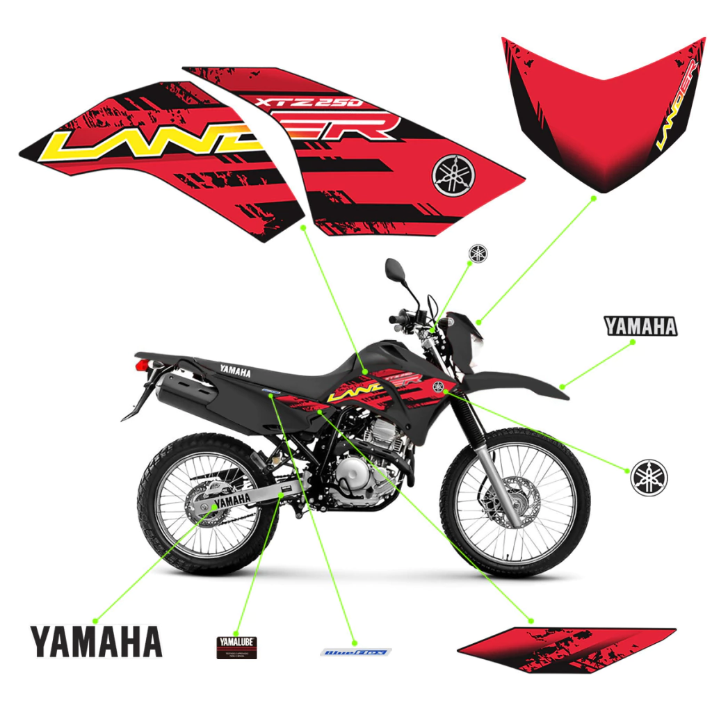 Kit Adesivos Para Moto Yamaha Lander Xtz 250 2018/2019 + Emblemas Resinados + Etiquetas