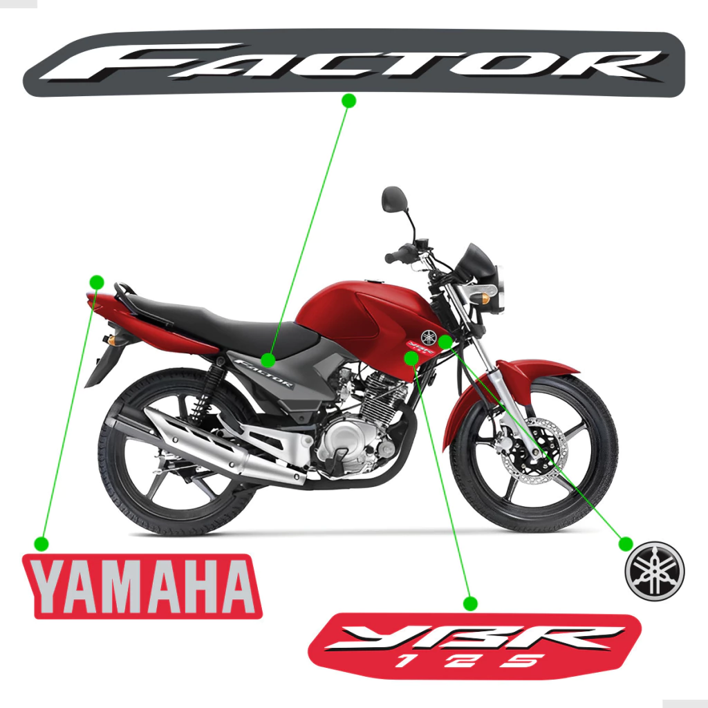 Kit Adesivos Para Yamaha Factor 125 Ybr 2010 Moto Vermelha + Emblemas Resinados - Genérico