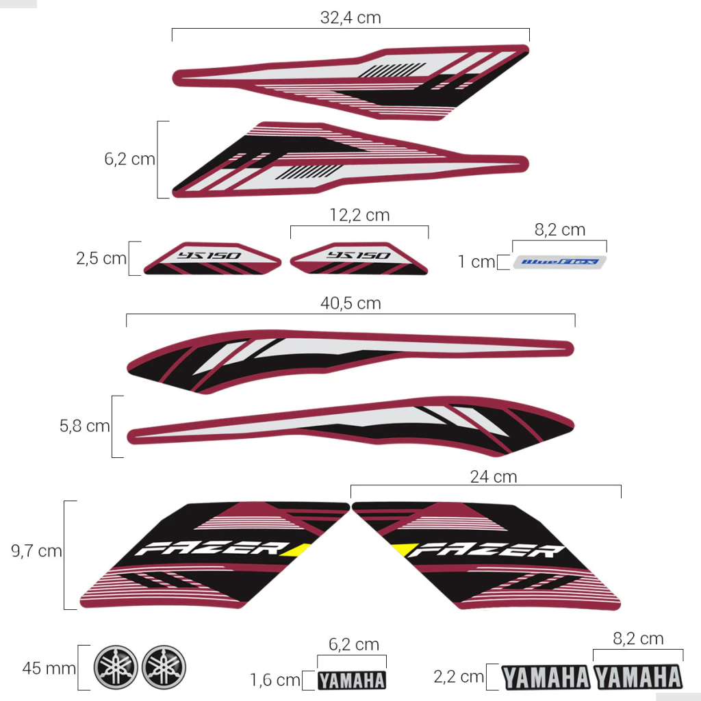 Kit Adesivos Para Yamaha Fazer 150 SED YS 2016 Moto Vermelha + Emblemas Resinados
