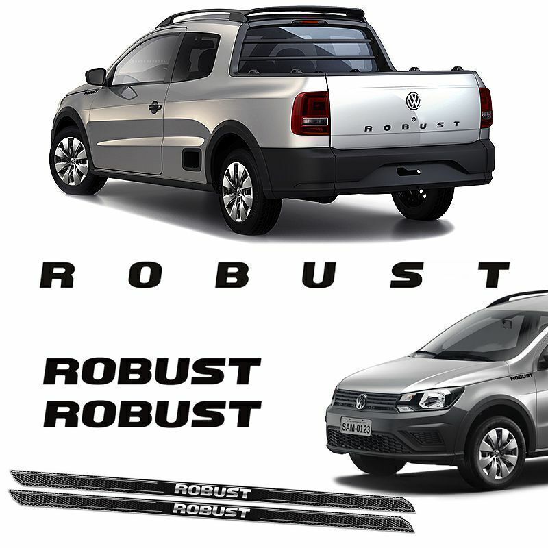 _x000D_Kit 3 Adesivos Saveiro Robust Emblema Preto + Soleira Protetora