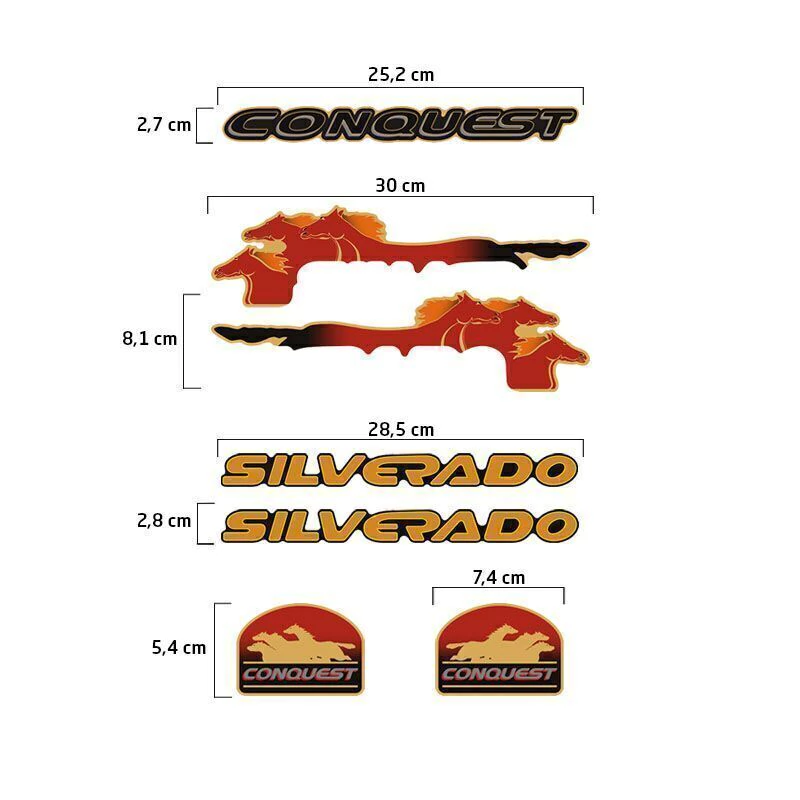 _x000D_Kit Adesivos Silverado Conquest 1999/2000 Emblemas Resinados
