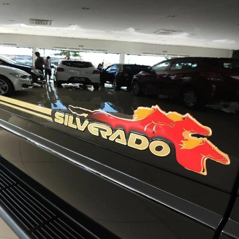 2 Adesivos Resinados Silverado / Fabricado em Poliéster Dourado / Dimensões: 28,5 x 2,8 cm