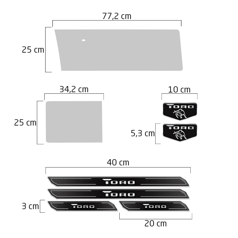 Kit Adesivos Toro 2020/2021 S-design Faixa do Capô e Traseira + Brasão + Soleira Protetora -