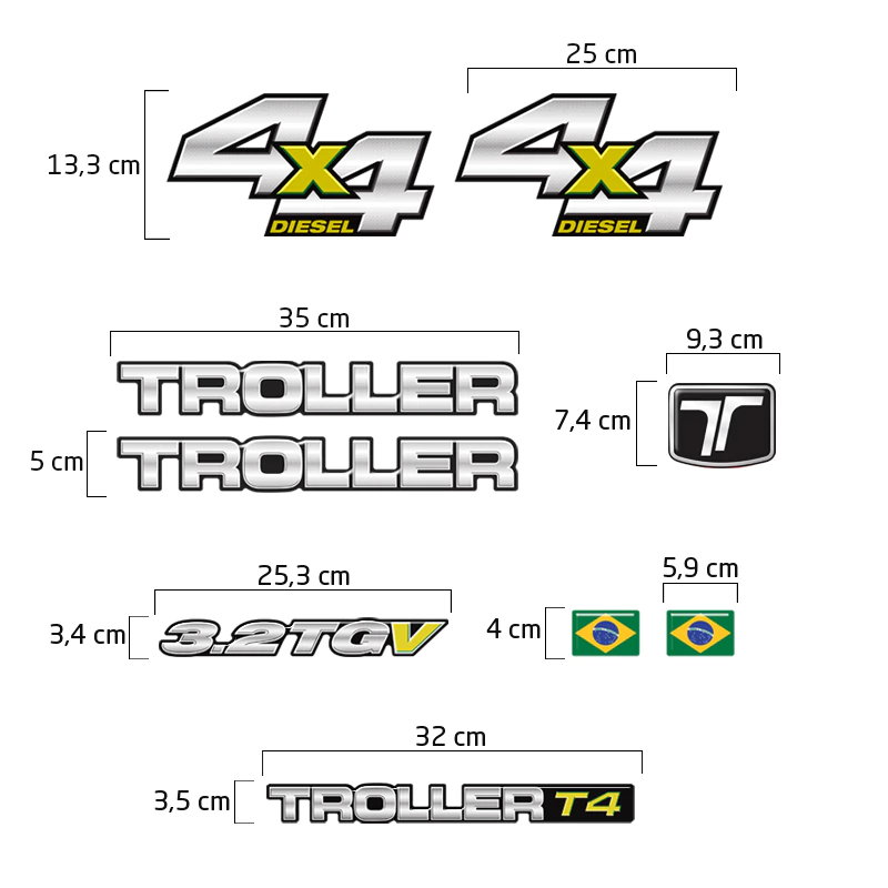 Kit Adesivos Troller T4 2013 4x4 Diesel 3.2 TGV Emblemas Resinados -
