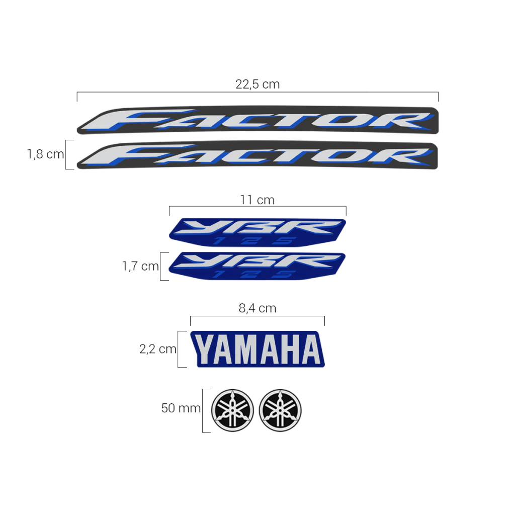 Kit Adesivos Yamaha Ybr 125 Factor 2009 Moto Azul + Logo Emblemas -