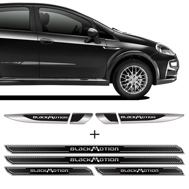 Kit Punto Blackmotion 2014/2015 Aplique Lateral Decorativo (Emblemas Resinados) + Soleira Da Porta Com Proteção Black Over