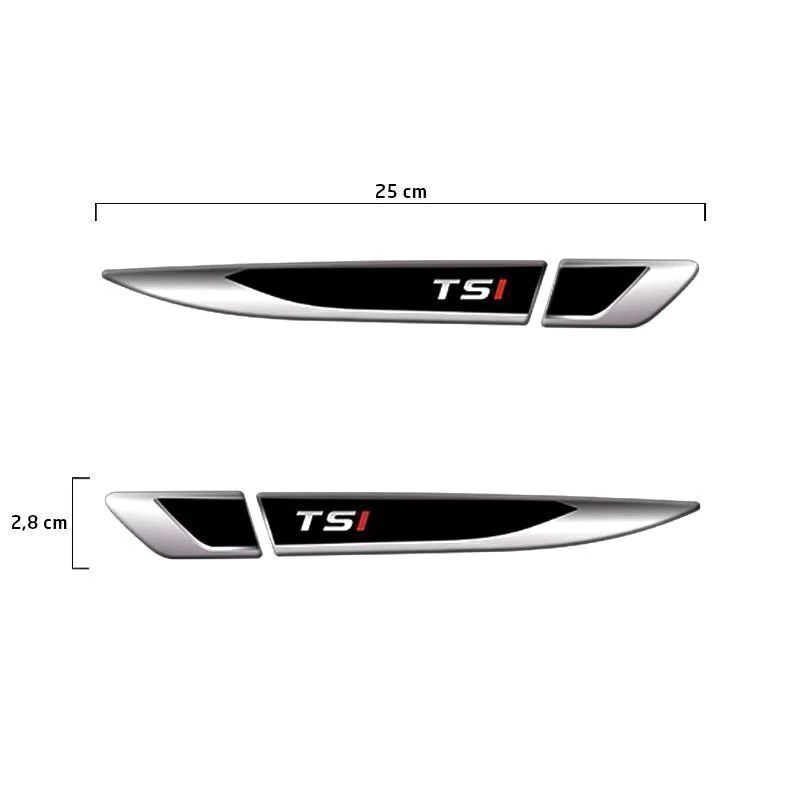 2 Apliques dos Para-lamas / Fabricado em Poliéster Cromado / 25 x 2,8 cm