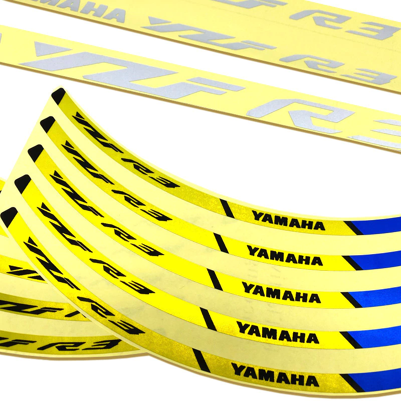 _x000D_Kit Apliques Frisos Refletivos Roda Yamaha YZF R3 2016 2017 2018 2019 2020 2021 2022 2023 Amarelo