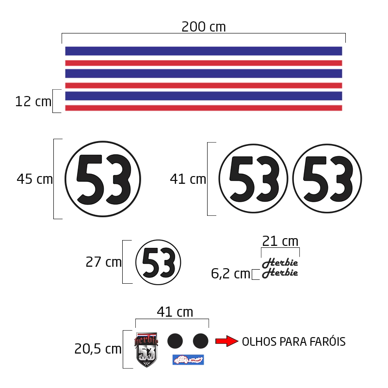 Quantidade: 1 Jogo de Faixas Completo Herbie 53