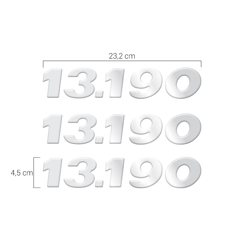 3 Emblemas 13.190 / Fabricado em Poliéster Cromado / Dimensões: 23,2 x 4,5 cm