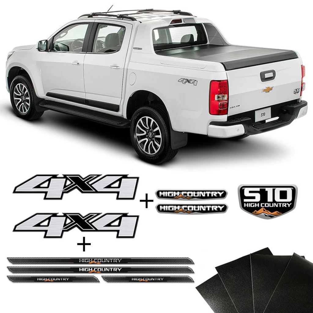 Kit Emblemas Resinados S10 High Country + Soleira Com Black Over