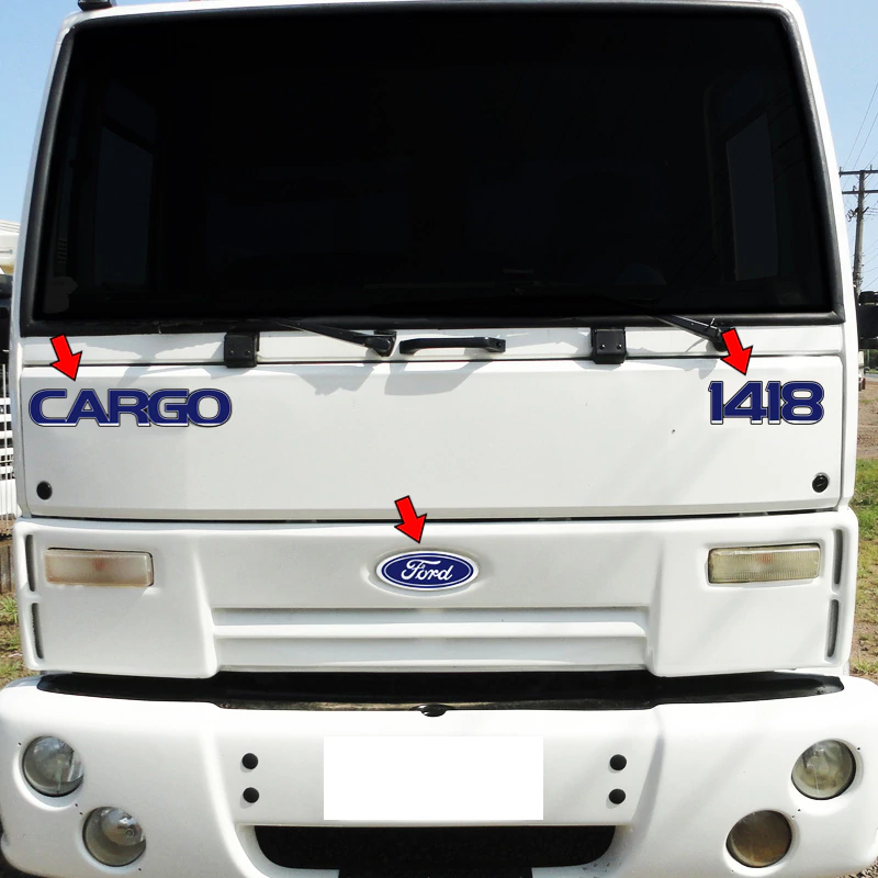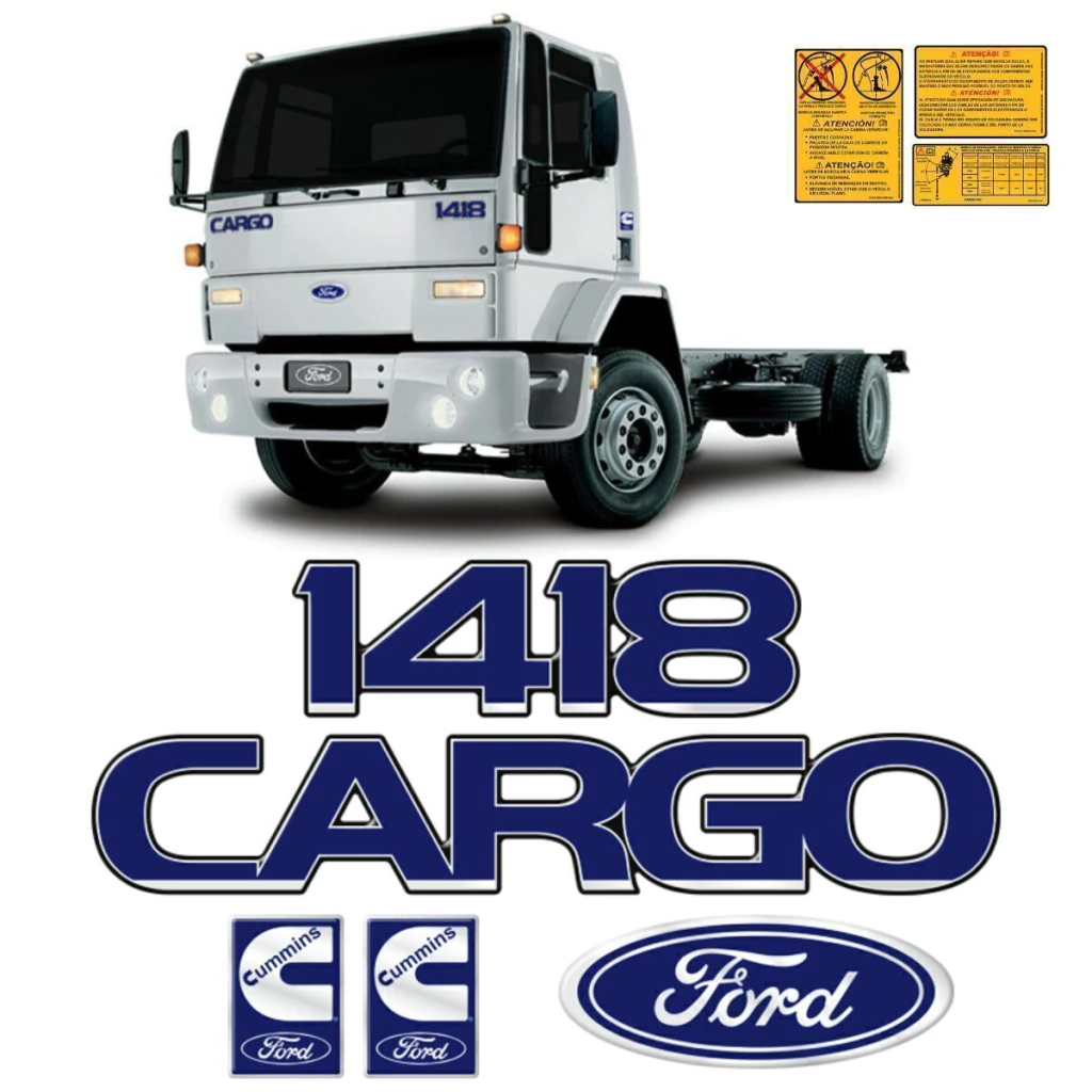 Kit Emblemas Compatível Cargo 1418 Adesivos Caminhão Ford Cummins Resinado + Etiquetas Advertência/Atenção Amarelo - Completo