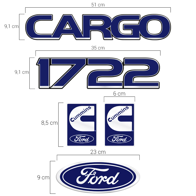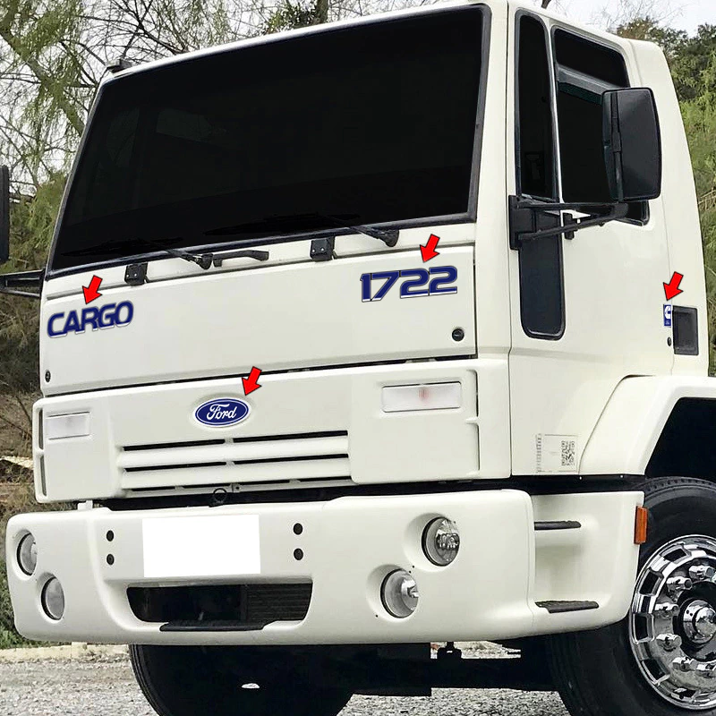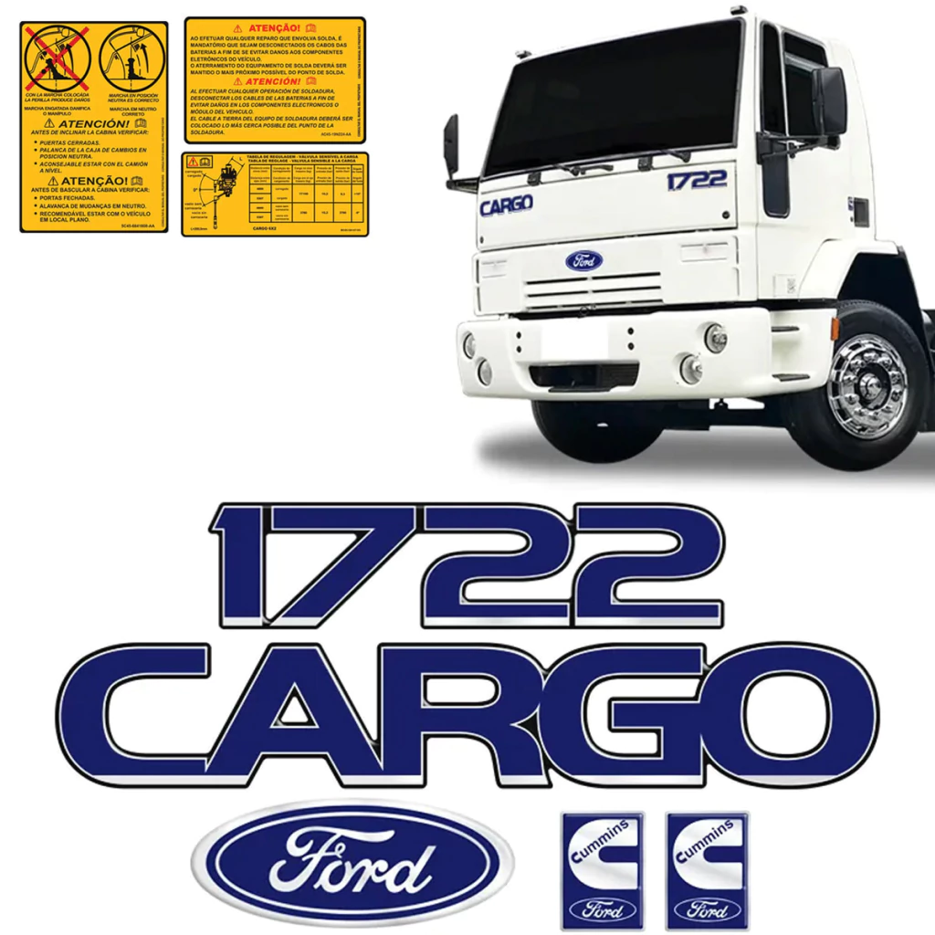 _x000D_Kit Emblemas Compatível Cargo 1722 Adesivos Caminhão Ford Cummins Resinado + Etiquetas Advertência/Atenção Amarelo - Completo