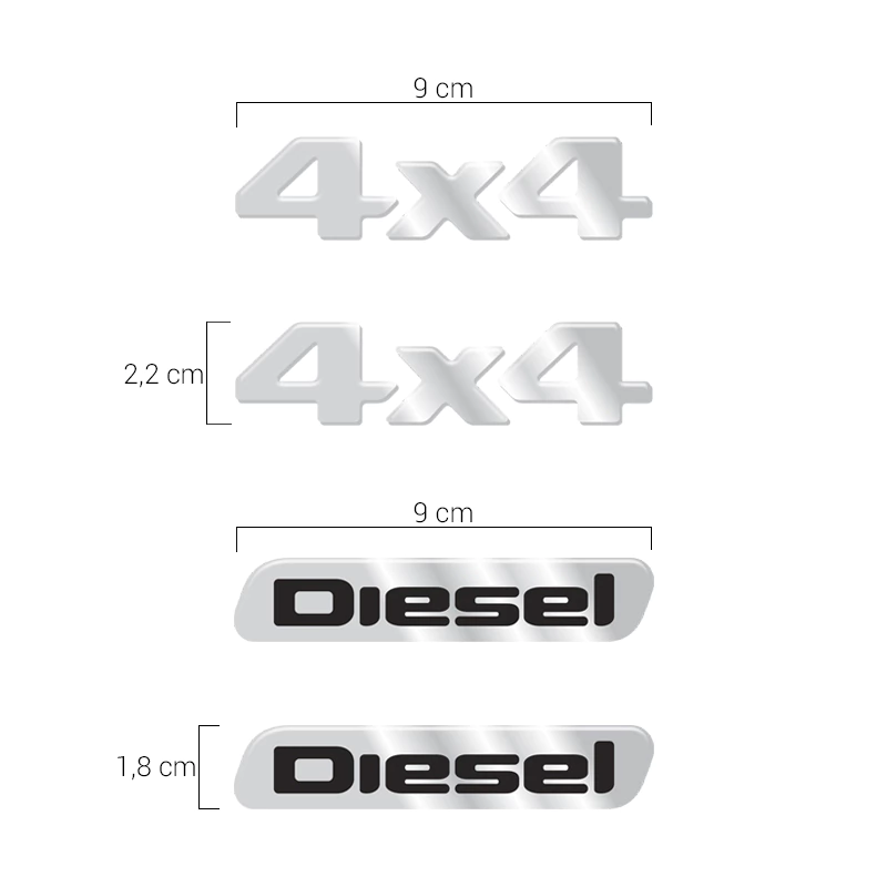 2 Emblemas 4x4 / Fabricado em Poliéster Cromado / Dimensões: 9 x 2,2 cm