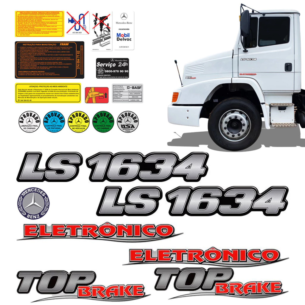 Kit Emblemas LS 1634 Top Brake Eletrônico Adesivo Reticulado Resinado Caminhão Mercedes Moderno