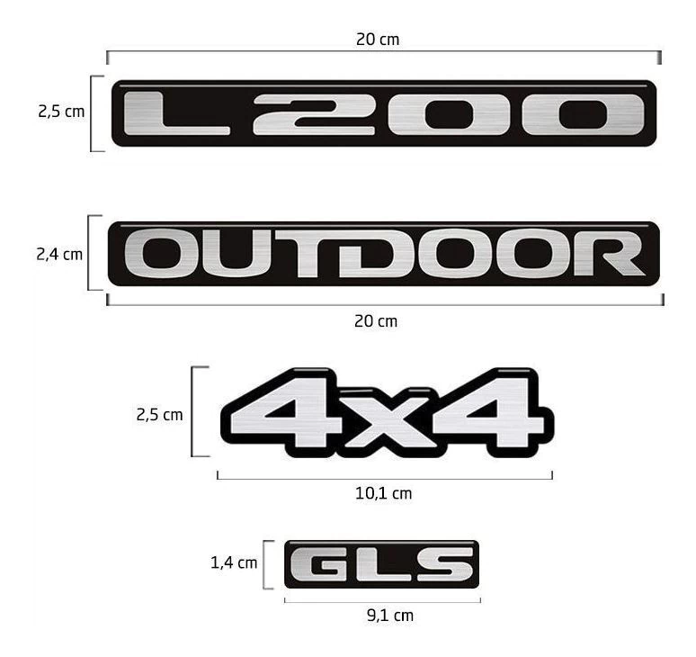 KIT EMBLEMAS RESINADOS Adesivos L200 Triton Gls: