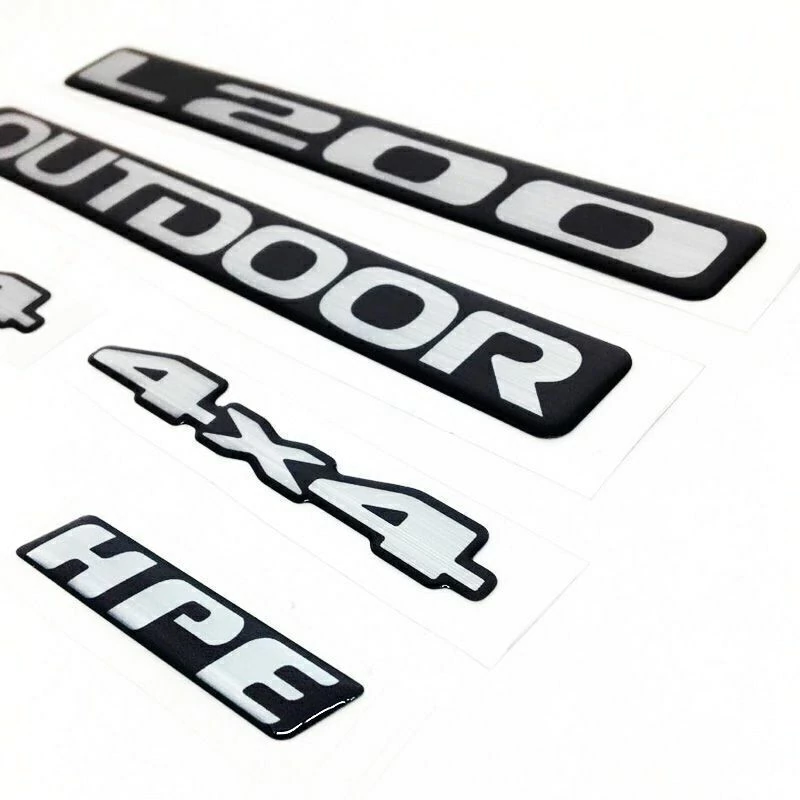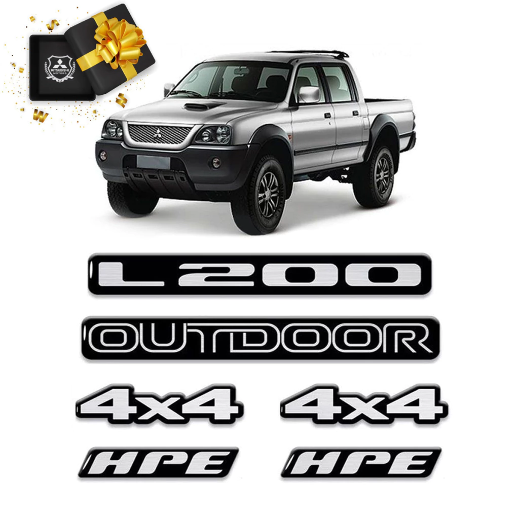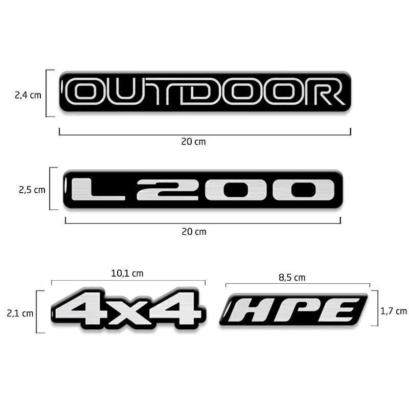 KIT DE EMBLEMAS ADESIVOS RESINADOS MITSUBISHI L200 OUTDOOR 4X4 HPE