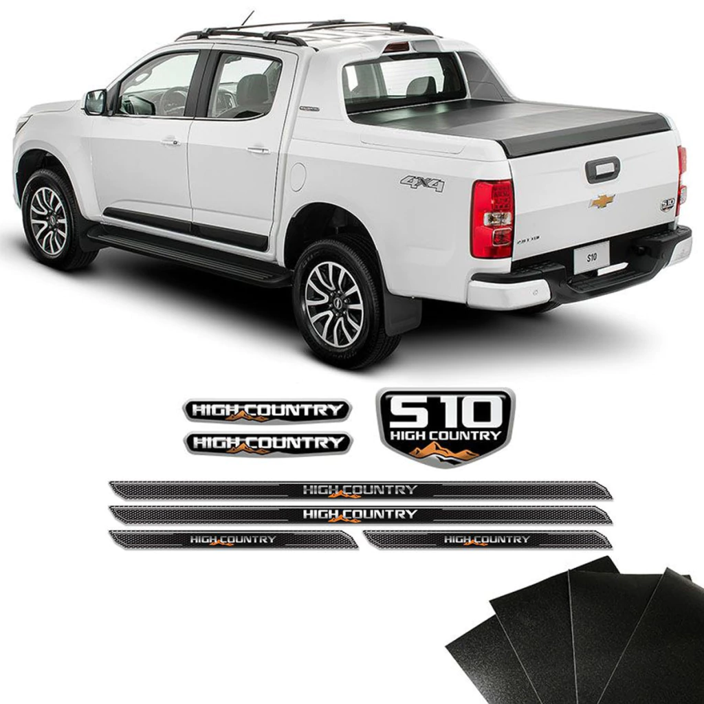 Kit Emblemas Resinados S10 High Country + Soleira Com Black Over