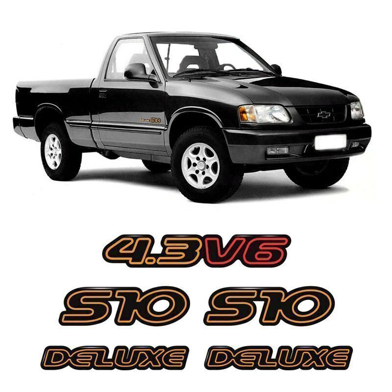 _x000D_Kit Emblemas S10 2000 Deluxe 4.3v6 Adesivo Preto Resinado