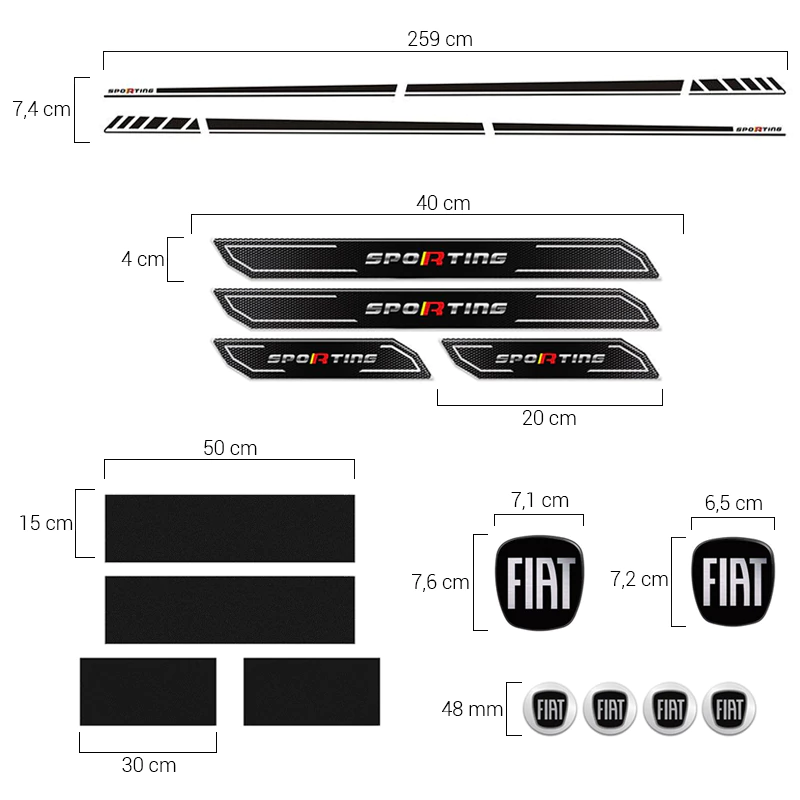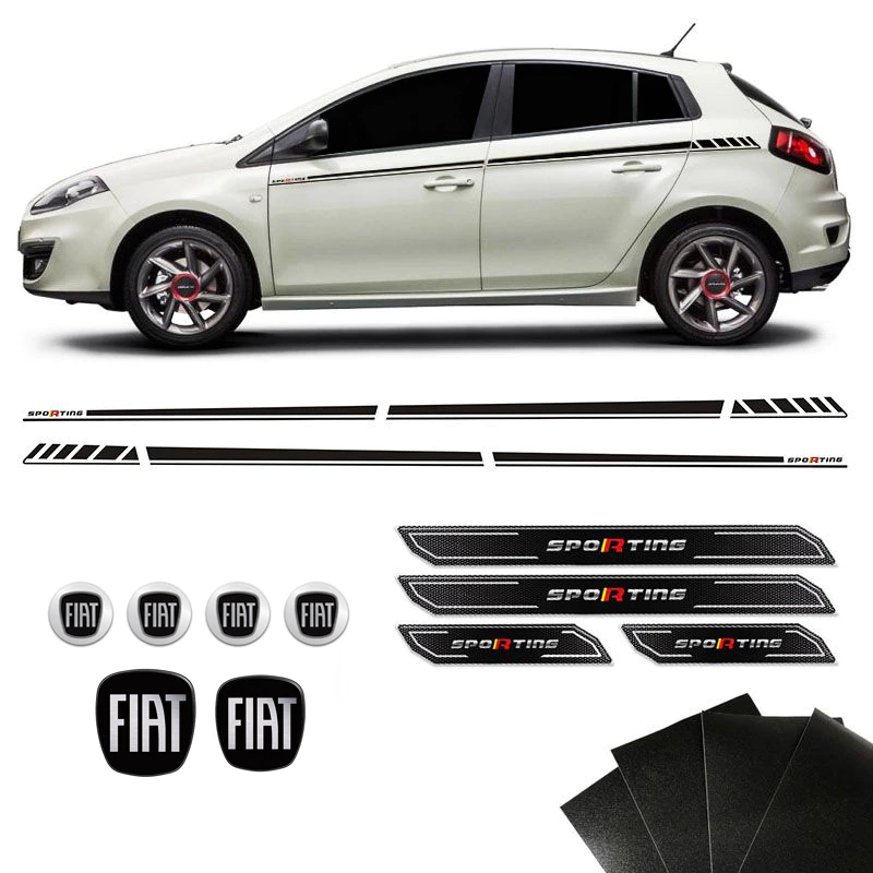 _x000D_Kit Completo Faixa Bravo Sporting Black + Soleira da Porta + Emblemas Fiat 2010 Até 2016