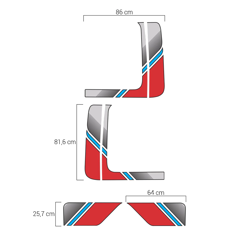 1 Par de Faixas Laterais (Inferior) / Fabricado em Vinil Transparente/ Dimensões: 64 x 25,7 cm