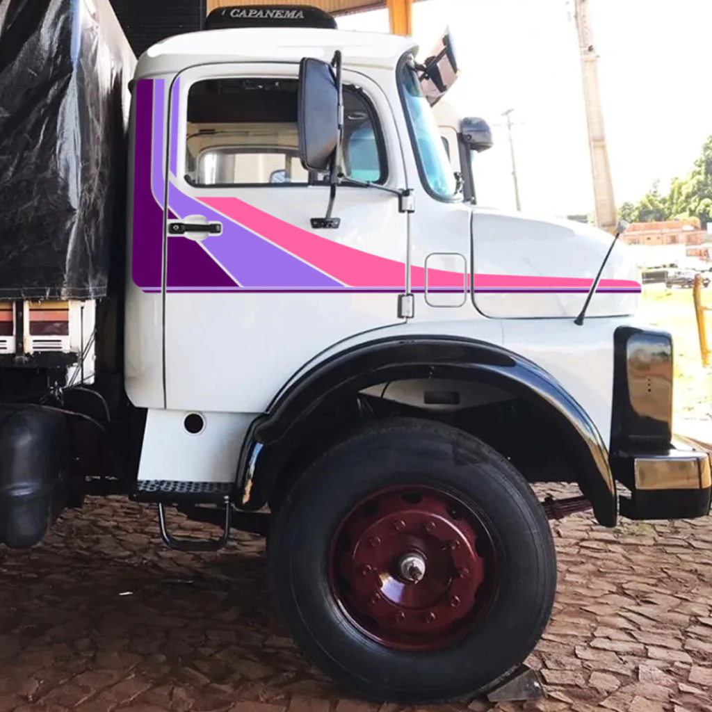 Kit Faixa Caminhão Mercedes Benz 1113 1114 Padrão 1987 Adesivo Lilás
