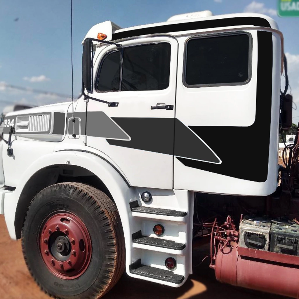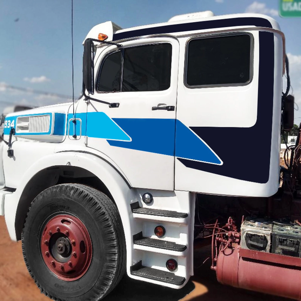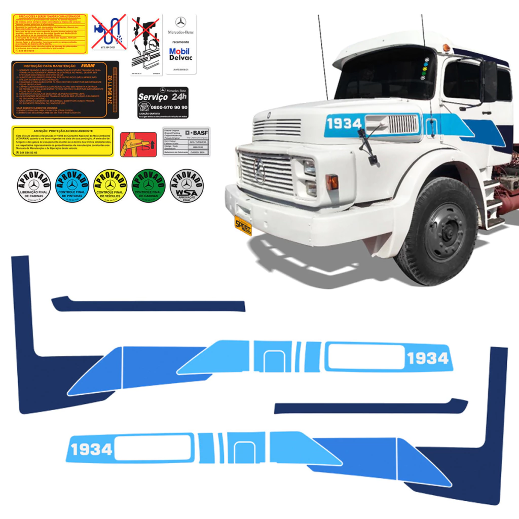 Kit Faixa Lateral Caminhão Mercedes Benz 1934 + Adesivos Etiquetas Advertência e Aprovado do Para-brisa -