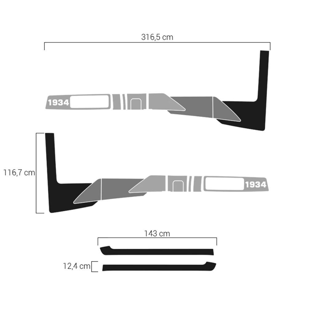 1 Par de Faixas Laterais (teto)/ Fabricado em Vinil Transparente/ Dimensões: 143 x 12,4 cm