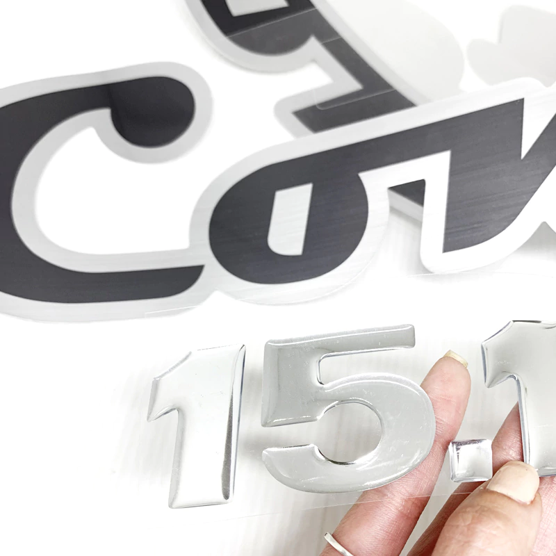 3 Emblemas 15.180 / Fabricado em Poliéster Cromado / Dimensões: 23 x 4,5 cm