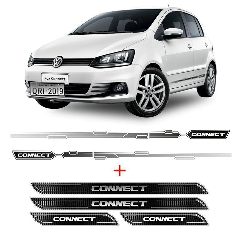 _x000D_Kit Faixa Fox Connect 2018/2019 Adesivo Lateral Preto + Soleira Protetora