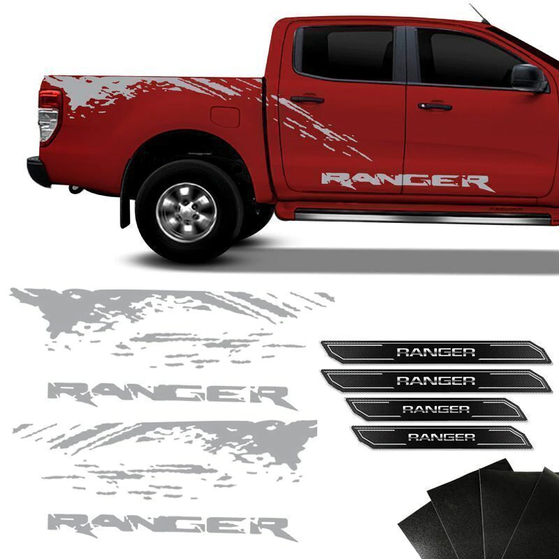 _x000D_Kit de Adesivos Faixas Laterais Cinza Ranger 2013/2019 + Soleira Com Black Over