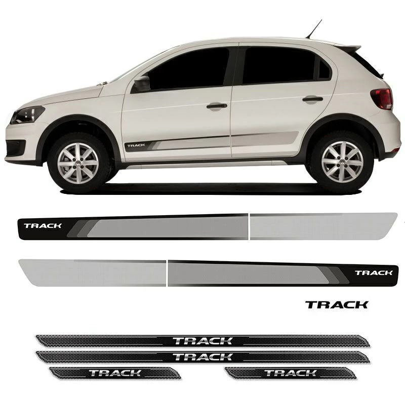 _x000D_Kit Faixa Lateral Gol Track 2013/2016 4 Portas Adesivo Preto + Emblema Traseiro + Soleira Com Black Over