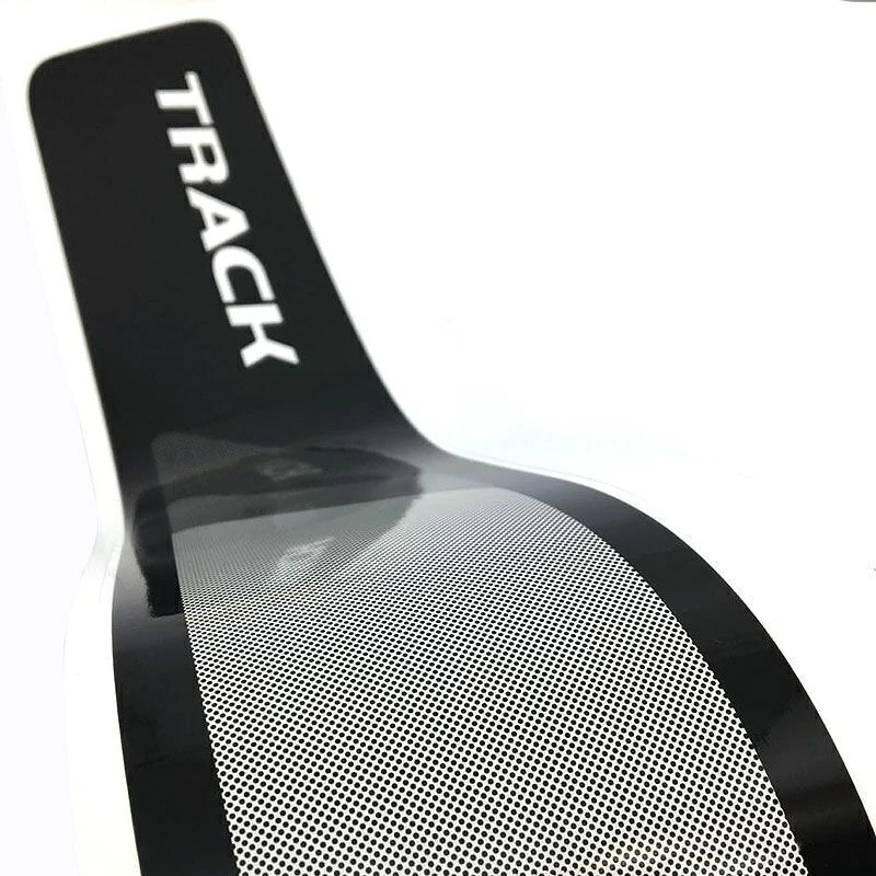 1 Emblema Track / Fabricado em Vinil Transparente (Serigrafia) / Dimensões: 13,1 x 1,5 cm
