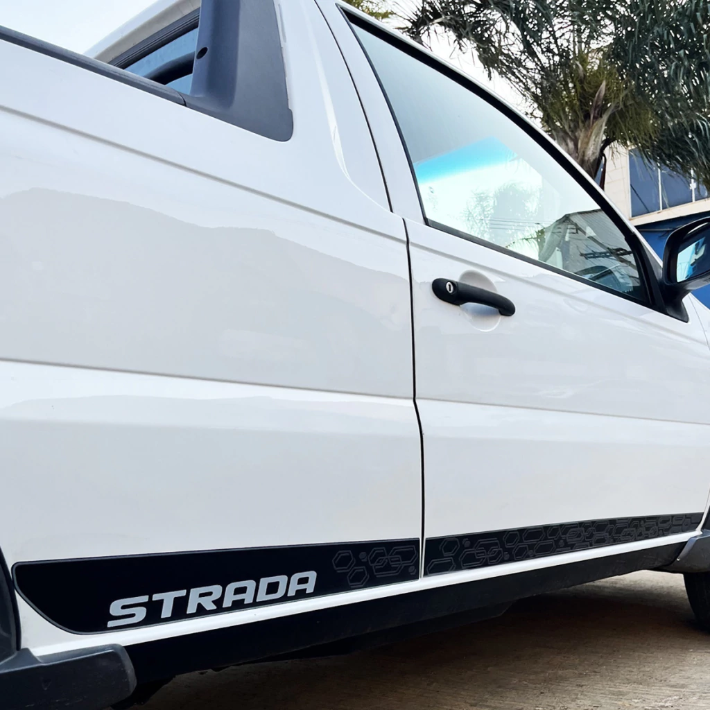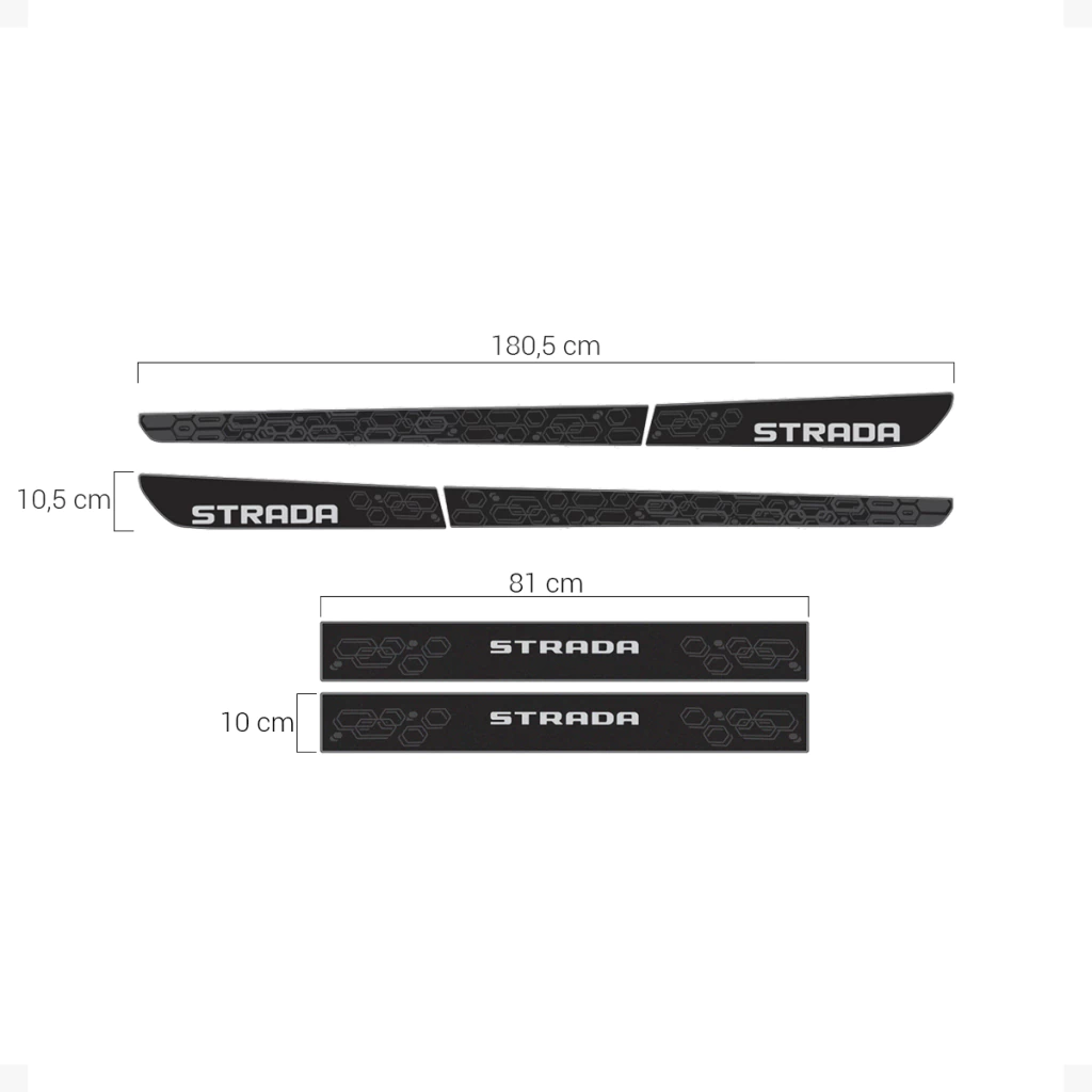 Kit Faixa Lateral Compatível Fiat Strada 2013 2014 2015 2016 2017 2018 2019 + Soleira - Genérico