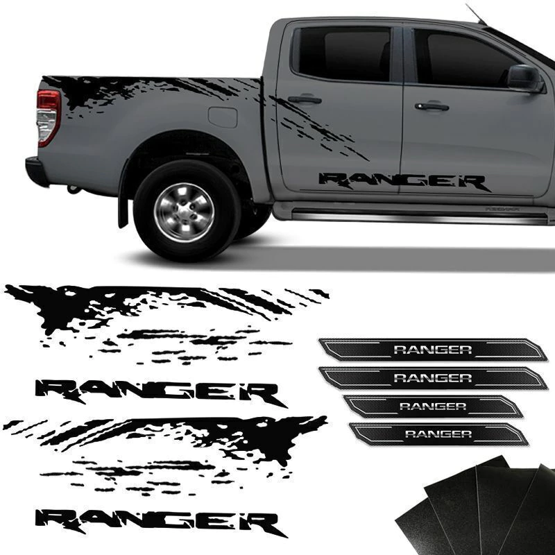 _x000D_Kit de Adesivos Faixas Laterais Preto Ranger 2013/2019 + Soleira Com Black Over