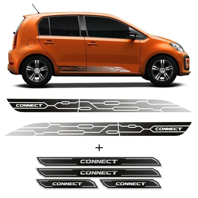 _x000D_Kit Faixa Lateral UP! Connect 2018 Adesivo Preto Modelo Original + Soleira Com Black Over