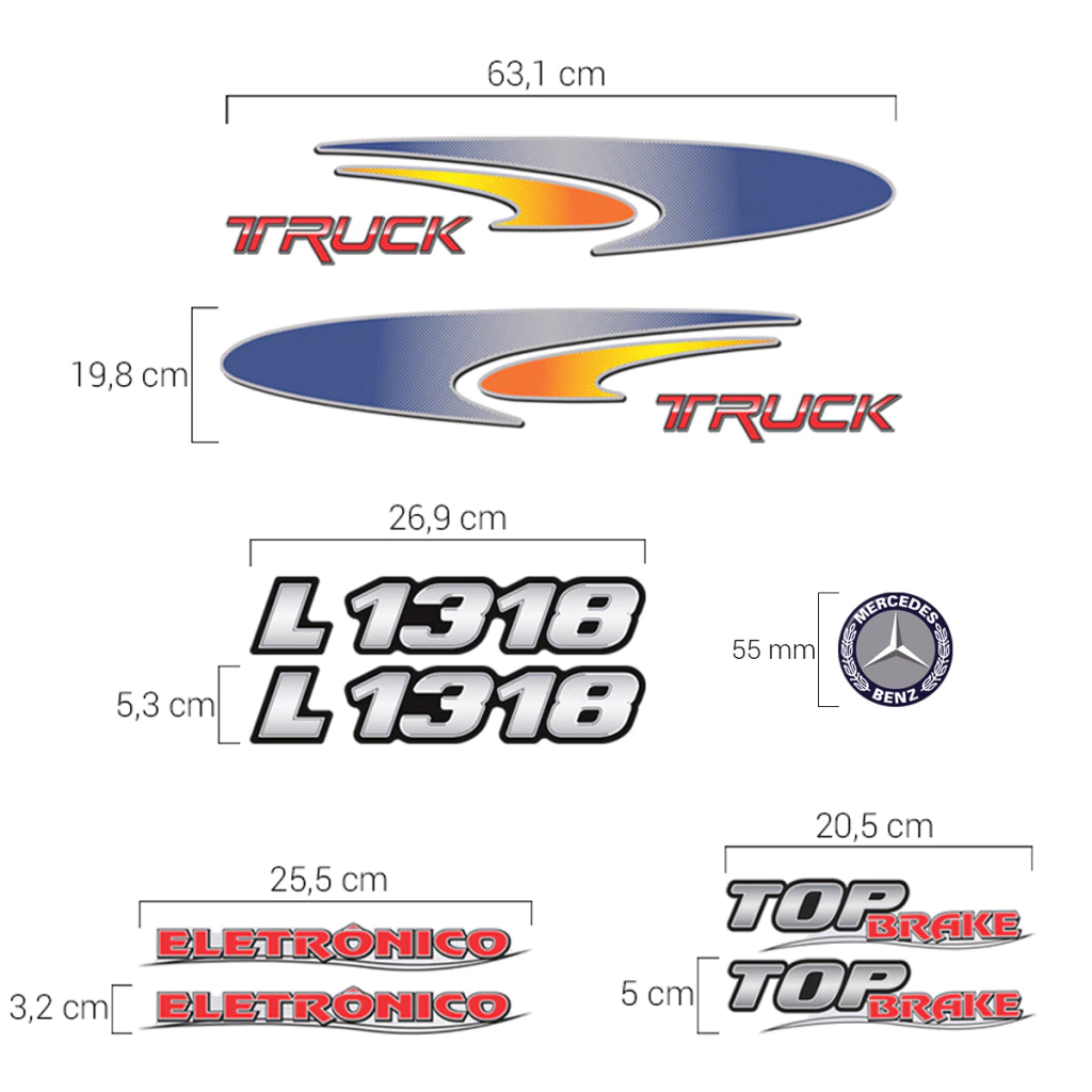 Kit Completo Faixa Mercedes-Benz Truck L 1318 + Emblemas Resinados (L 1318, Top Brake e Eletrônico)