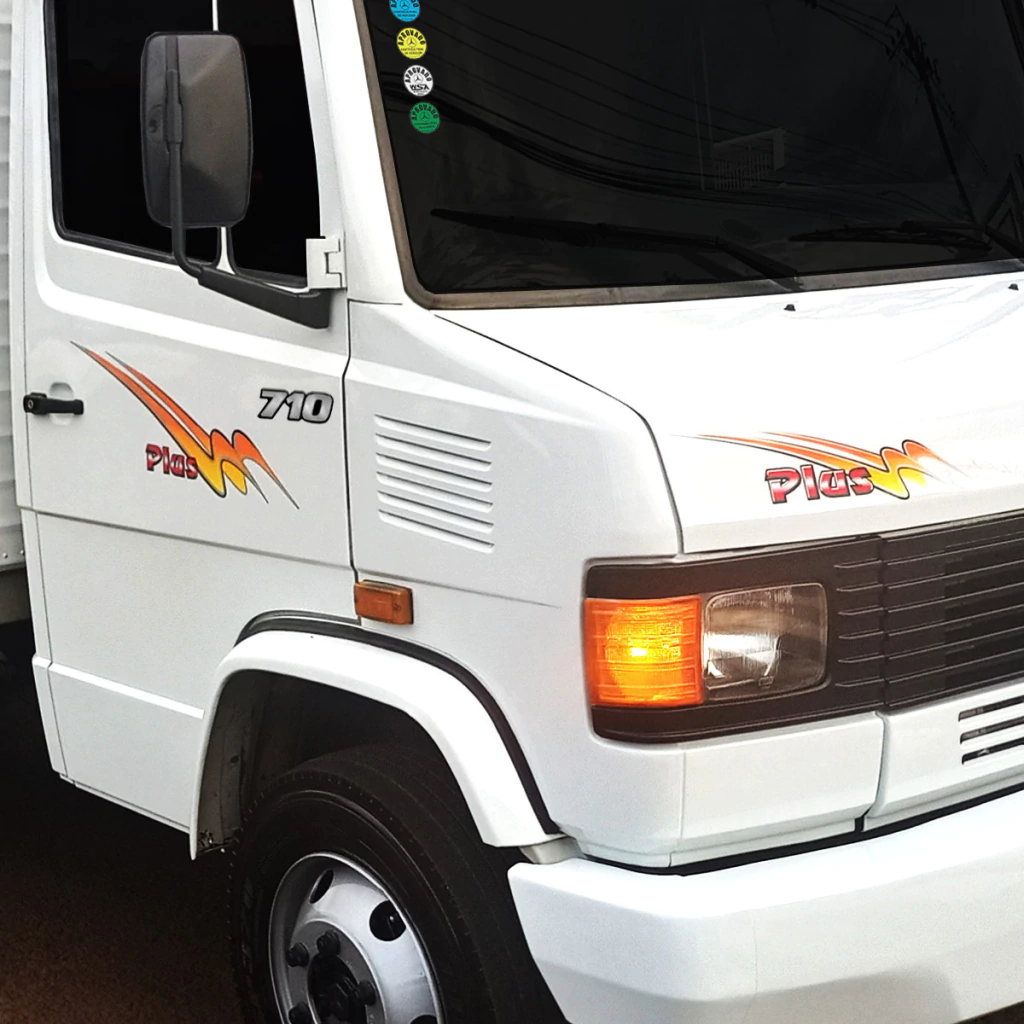 Kit Faixa Mercedes-Benz 710 Plus 2004 + Emblemas Resinados (Adesivo Para Portas e Capô) + Adesivos Etiquetas Advertência e Aprovado do Para-brisa -