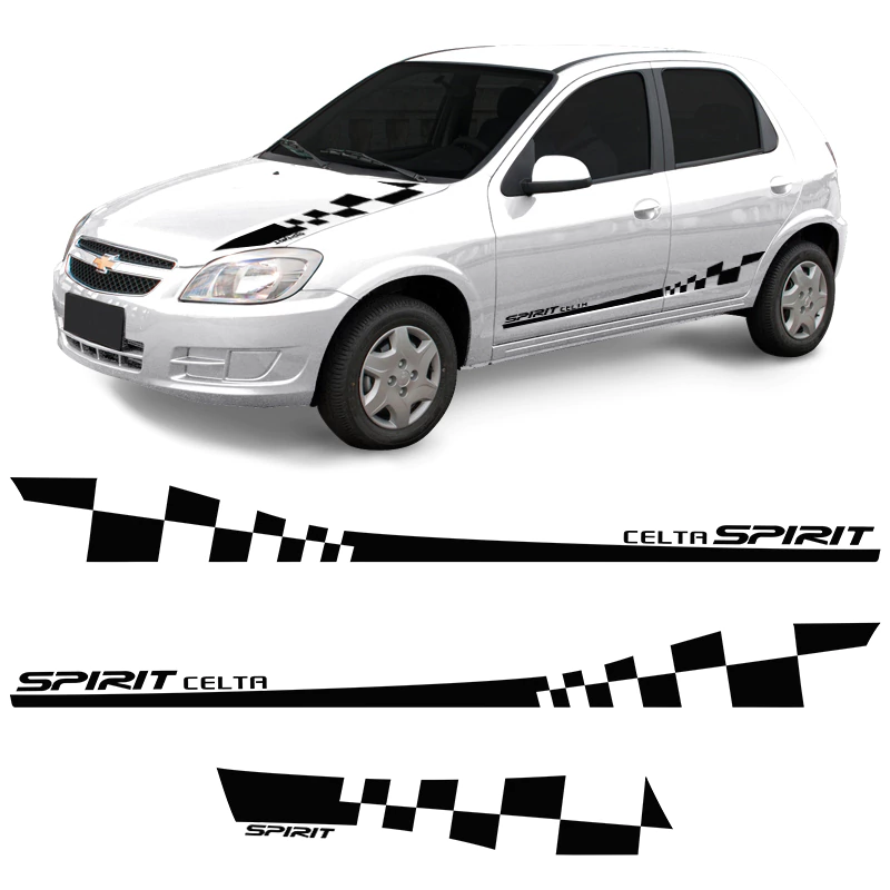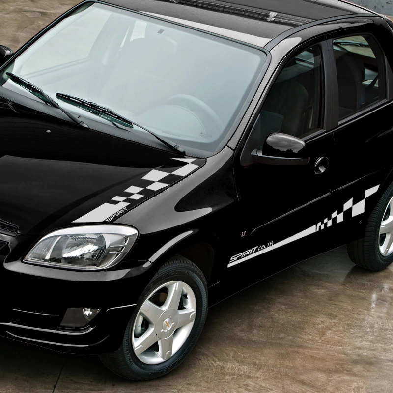 Kit Faixa Compativel Celta Spirit 2006/ Adesivo Lateral e Capô Decorativo Racing