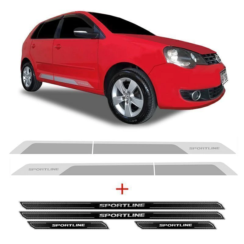 _x000D_Kit Faixa Polo Sportline 2014 Adesivo Lateral Prata + Soleira Com Black Over