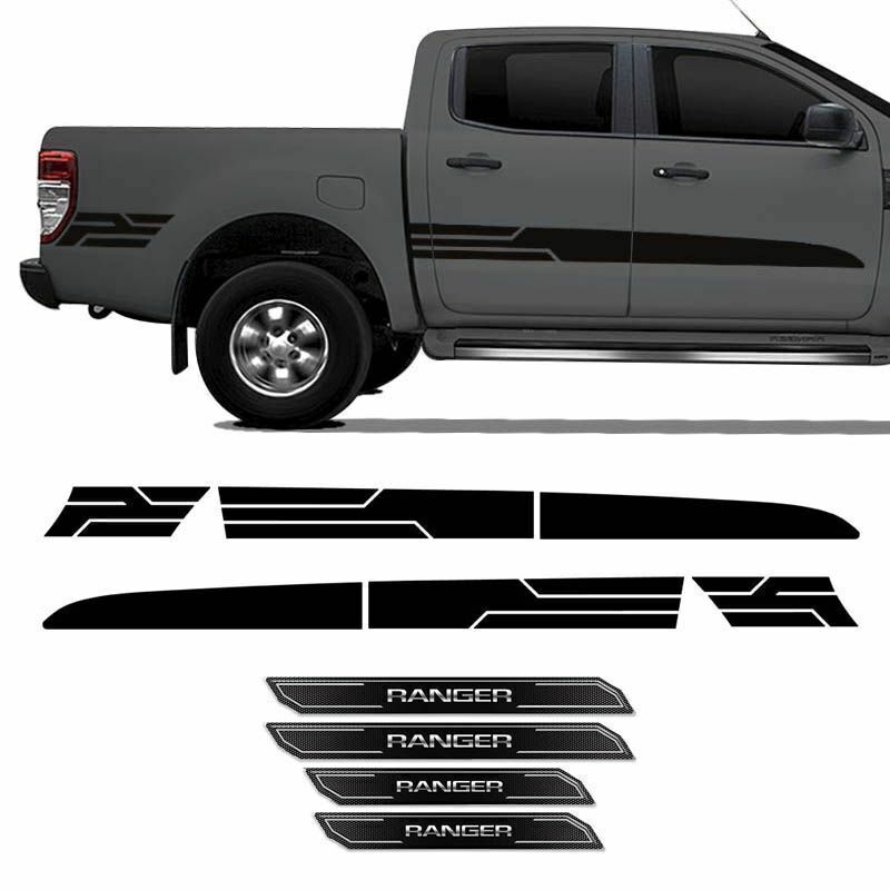 _x000D_Kit Faixa Lateral Ranger 2014/2019 4 Portas Preto + Soleira Resinada Com Black Over