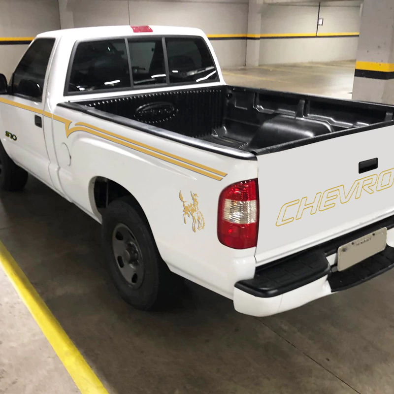 _x000D_Kit Completo Faixa Lateral/Traseira Dourado S10 Rodeio 2001 + Emblemas Resinado -