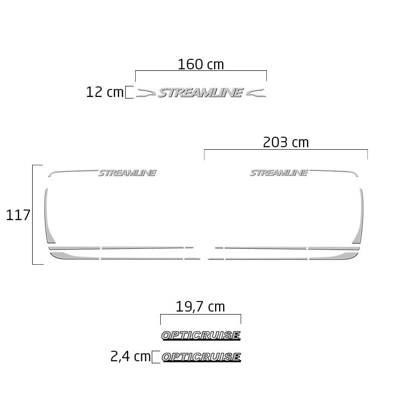 2 Adesivos Opticruise / Fabricado em Poliéster Cromado / Dimensões: 19,7 x 2,4 cm
